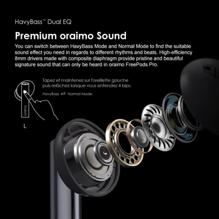 ویژگی های کلیدی هندزفری بلوتوثی ارایمو مدل Oraimo freepods pro plus: