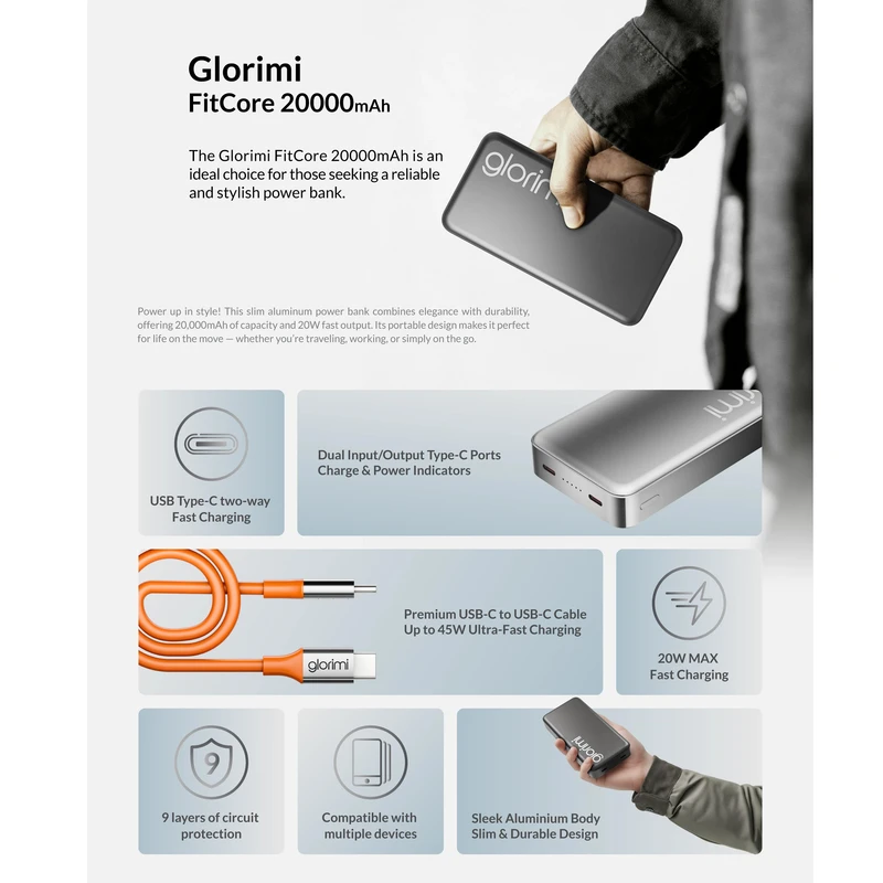 در دنیای شلوغ امروز، تمام شدن شارژ گوشی یکی از بزرگترین دغدغه هاست. پاوربانک Glorimi Fitcore 20k محصولی است که با ظرفیت بالا و تکنولوژی های روز شارژ، خیال شما را از بابت انرژی گجت هایتان راحت می کند.